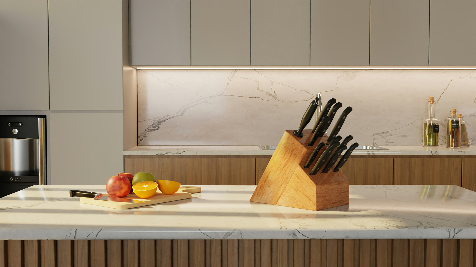 - Kompakt design: Opretstående knivblok, der passer under lave køkkenskabe.